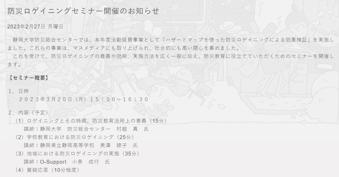 防災ロゲイニングセミナー開催のお知らせ – 防災総合センター (shizuoka.ac.jp)